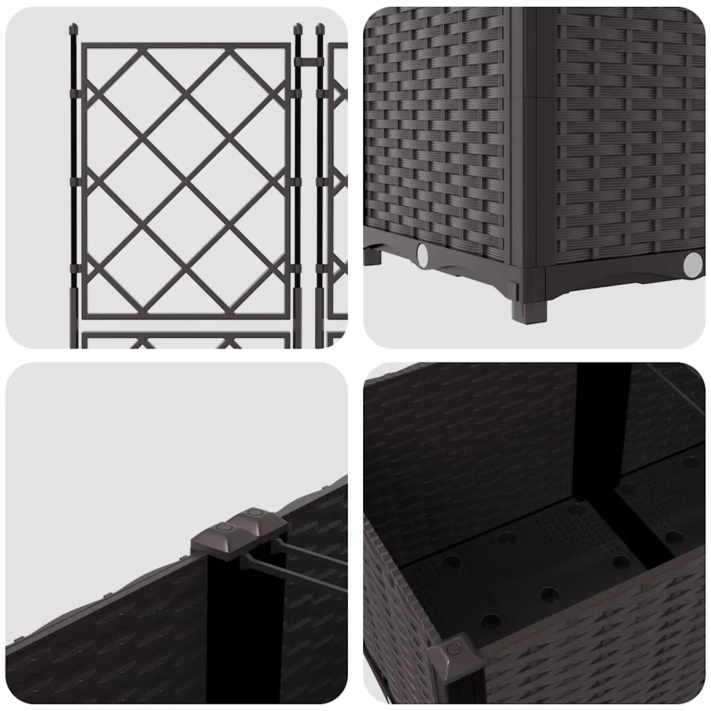 Pruunist terasest trellisega istutuskastid aitavad luua vertikaalset haljastust ja lisada privaatsust igasse aeda, terrassile või sisehoovi. Kolmest osast koosnev komplekt sobib eriti hästi ronitaimede kasvatamiseks, moodustades aja jooksul tiheda rohelise seina. Vastupidav konstruktsioon on mõeldud välitingimustes kasutamiseks ja sulandub tänu modernsele välimusele erinevatesse väliruumidesse.