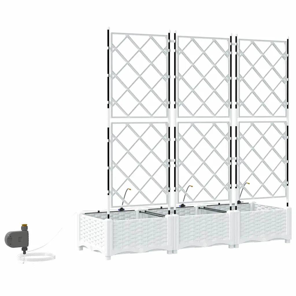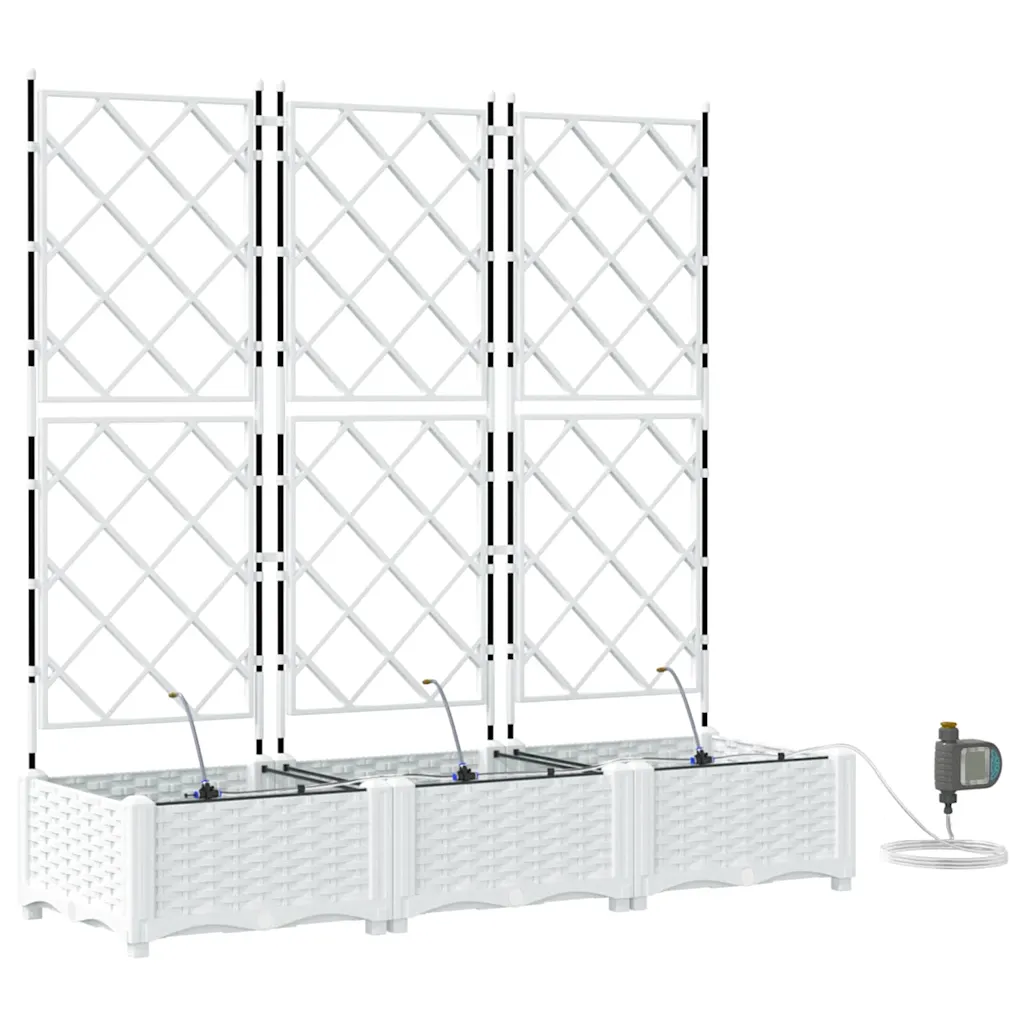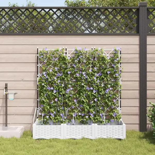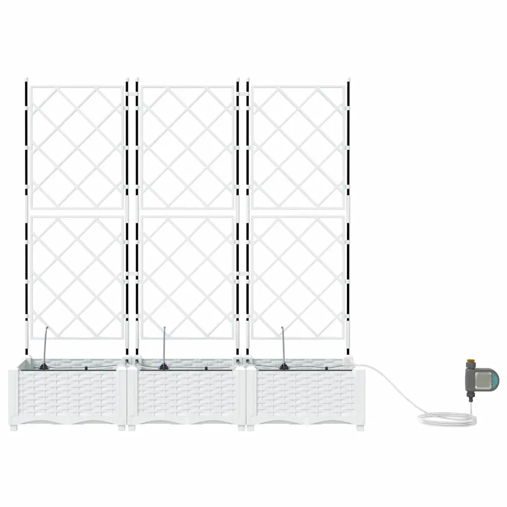 Valgest terasest trellisega istutuskastide komplekt aitab luua rohelise seina, mis pakub nii silmailu kui ka lisaprivaatsust. Kolm omavahel sobituva välimusega istutuskasti koos tugivõrega sobivad ronitaimede, lillede ja maitsetaimede kasvatamiseks ning integreeritud kastmissüsteem aitab hoida taimedele vajalikku niiskust ka kuivematel perioodidel.
