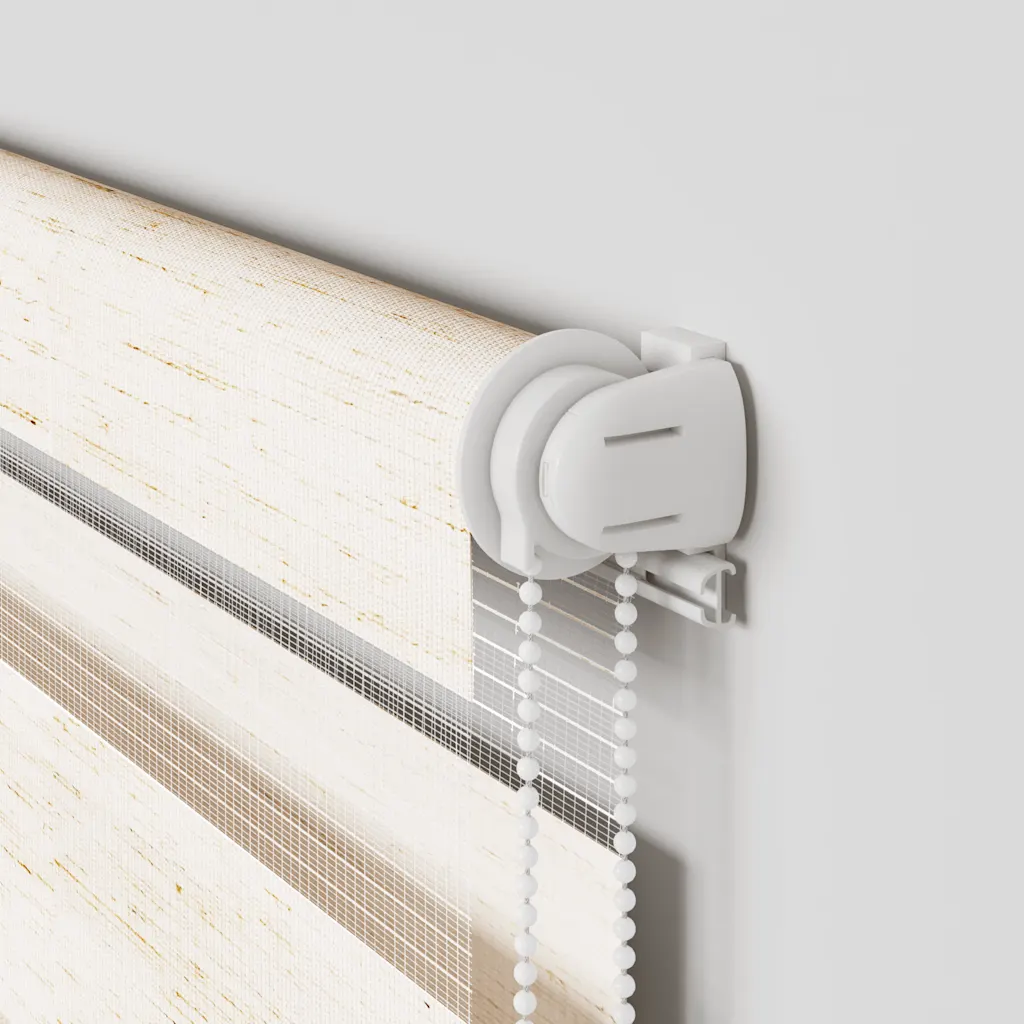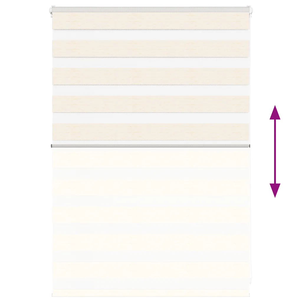 Marmorbeež triibuline sebra ruloo mõõduga 95 x 100 cm ühendab dekoratiivse välimuse ja praktilise valguse reguleerimise. Kahekihiline kangas vahelduvate läbipaistvate ja läbipaistmatute ribadega aitab luua ruumis kas diskreetse valguse või peaaegu täieliku pimenduse.