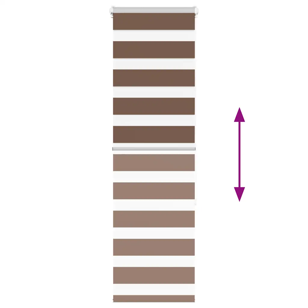 See pruun triibuline sebraruloo aitab luua ruumis sobiva valguse ja vajaliku privaatsuse. Kahekihiline kangas, millel on vaheldumisi läbipaistvad ja läbipaistmatud ribad, võimaldab lihtsa keti abil liugeldes muuta ruumi valgusastet alates poolläbipaistvast kuni peaaegu täieliku pimenduseni. Kompaktne mõõt 50 x 150 cm sobib hästi väiksematele akendele elutoas, magamistoas või kontoris.