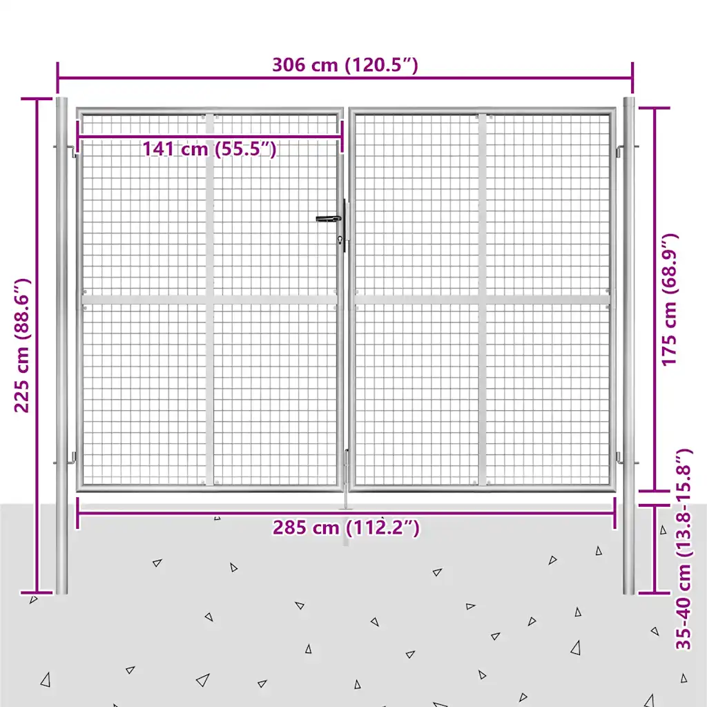See tsingitud terasest aiavärav loob selge sissepääsu ja piiri teie aiale, siseõuele või verandale, pakkudes stabiilset ja vastupidavat lahendust. Hõbedane klassikaline disain sobitub erinevate aedade ja piiretega ning aitab luua ühtse, korrastatud ilme.