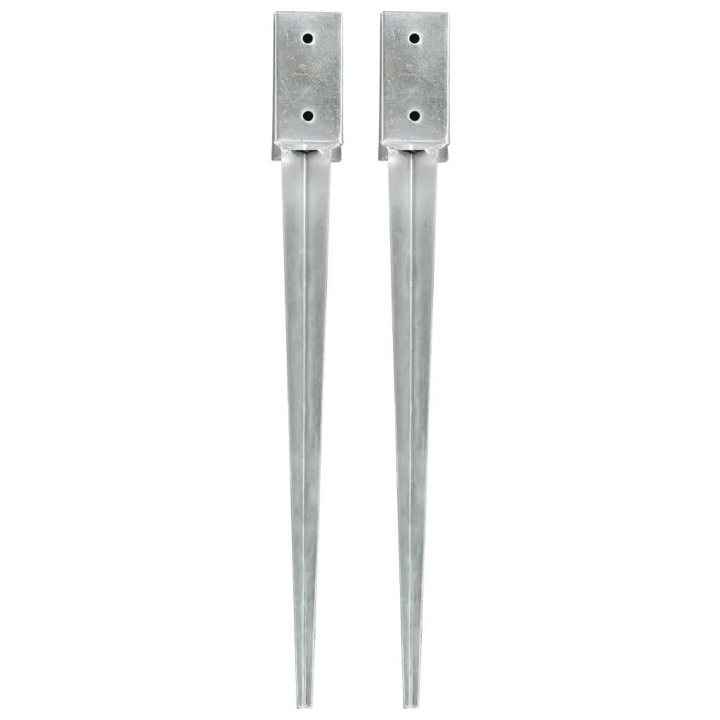 - 2 maavaia tsingitud terasest, hõbedane, mõõtmed 7 x 7 x 75 cm