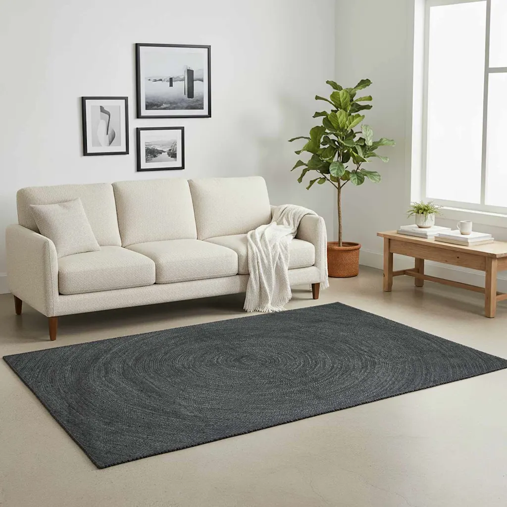 Kui otsid looduslikust materjalist suurt vaipa, mis ühendab modernse välimuse ja praktilise hoolduse, on see mudel hea valik elutuppa või lounge’i. Käsitsi valmistatud tumehall džuutvaip toob ruumi hubasust ja aitab luua tervikliku sisekujunduse.