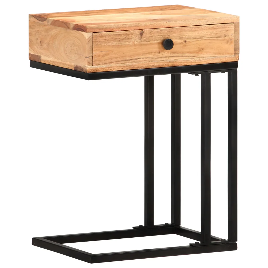 See tugev U-kujuline lisalaud ühendab naturaalse akaatsiapuidu sooja ilme ja pulbervärvitud terasraami selge joone. Kompaktne mõõt 45 x 30 x 61 cm pakub mugavat lisapinda ning integreeritud sahtel aitab hoida väiksemad esemed käepäraselt, ilma et ruum muutuks korratuks.