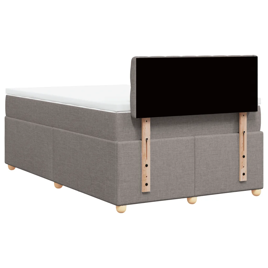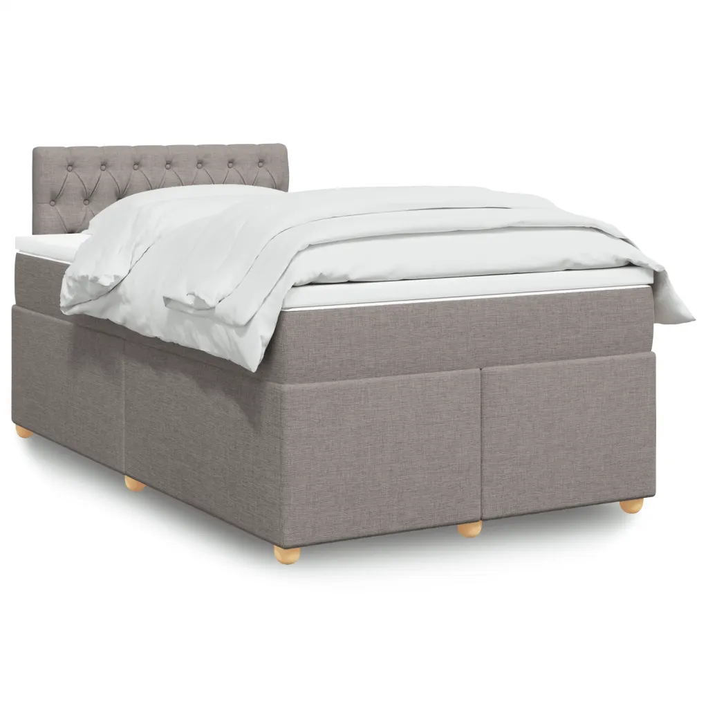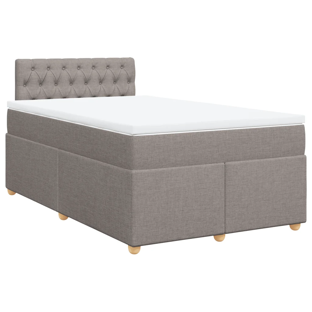 • Voodiraam peatsiga pruunikashallist polüesterkangast, mõõtmetega 190 x 120 x 100,5 cm (pikkus x laius x kõrgus)