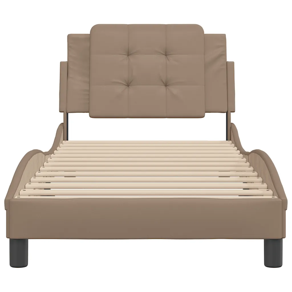See kunstnahaga kaetud Zadar voodiraam sobib hästi, kui otsite kompaktset ühe inimese voodit, mis pakub nii visuaalset korrektsust kui ka mugavat seljatuge istumisasendis. Laineline külgdisain ja neutraalne cappuccino toon sobituvad kergesti erinevate sisustusstiilidega, samas kui vineerist liistud ja tugev raam aitavad tagada kindla aluse teie valitud madratsile.