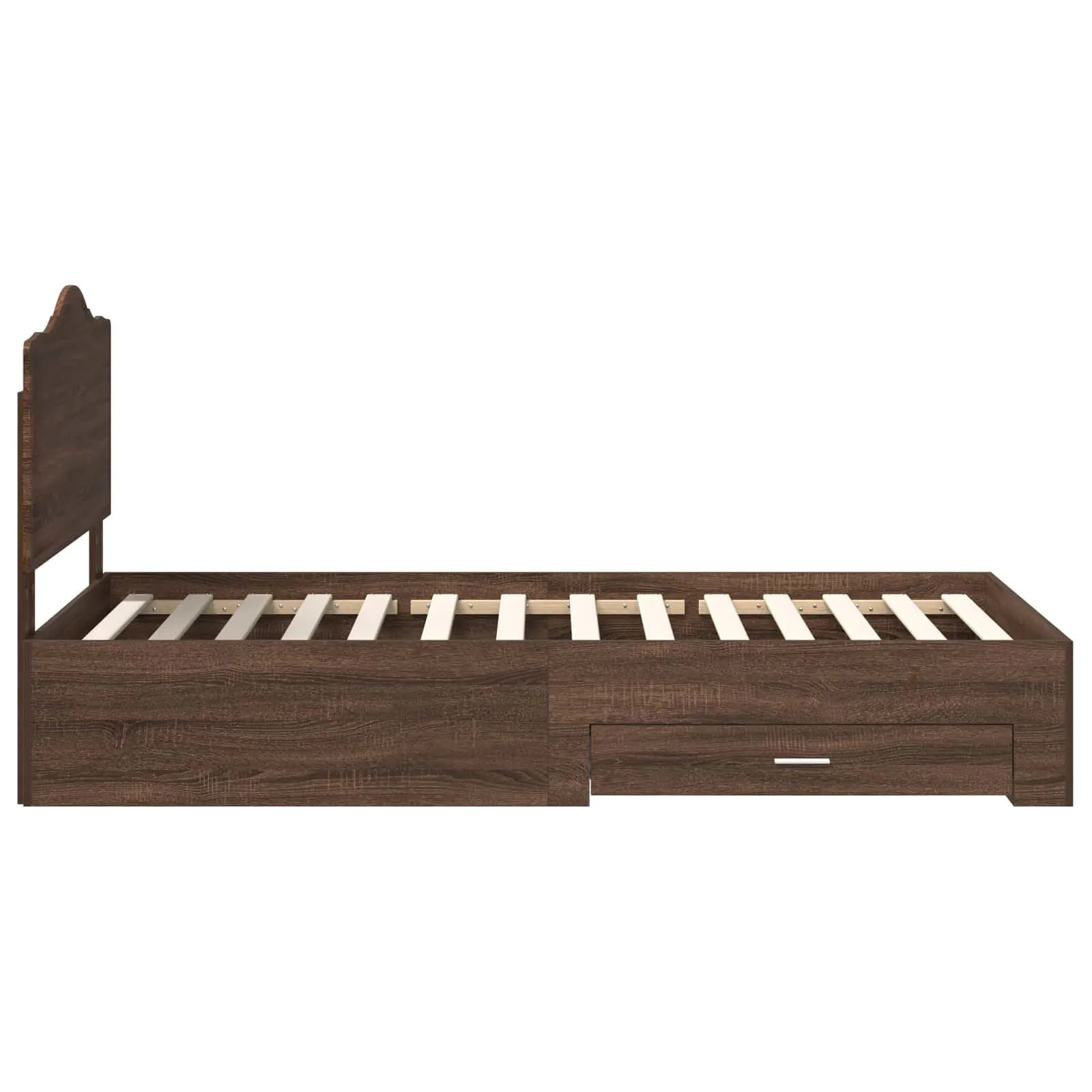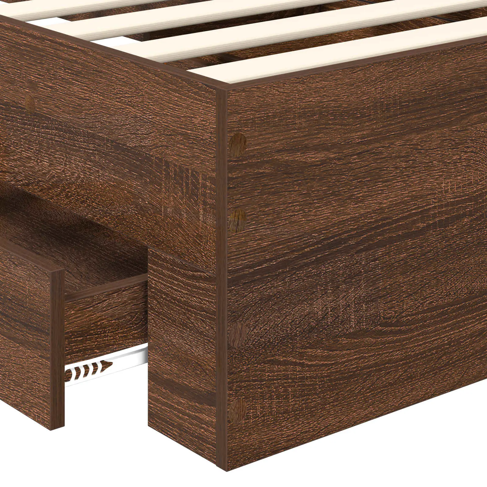 See ühe inimese voodiraam sahtlitega on praktiline lahendus magamistuppa, kus ruumi on piiratud, kuid mugavusest järele anda ei soovita. Pruuni tamme toonis tehispuidust konstruktsioon sobitub hästi kaasaegsesse sisekujundusse ning kõrge peats loob voodile viimistletud ilme. Külgedele integreeritud panipaigasahtlid aitavad hoida magamistoa korras, pakkudes lisa hoiuruumi voodipesu ja muude esemete jaoks.