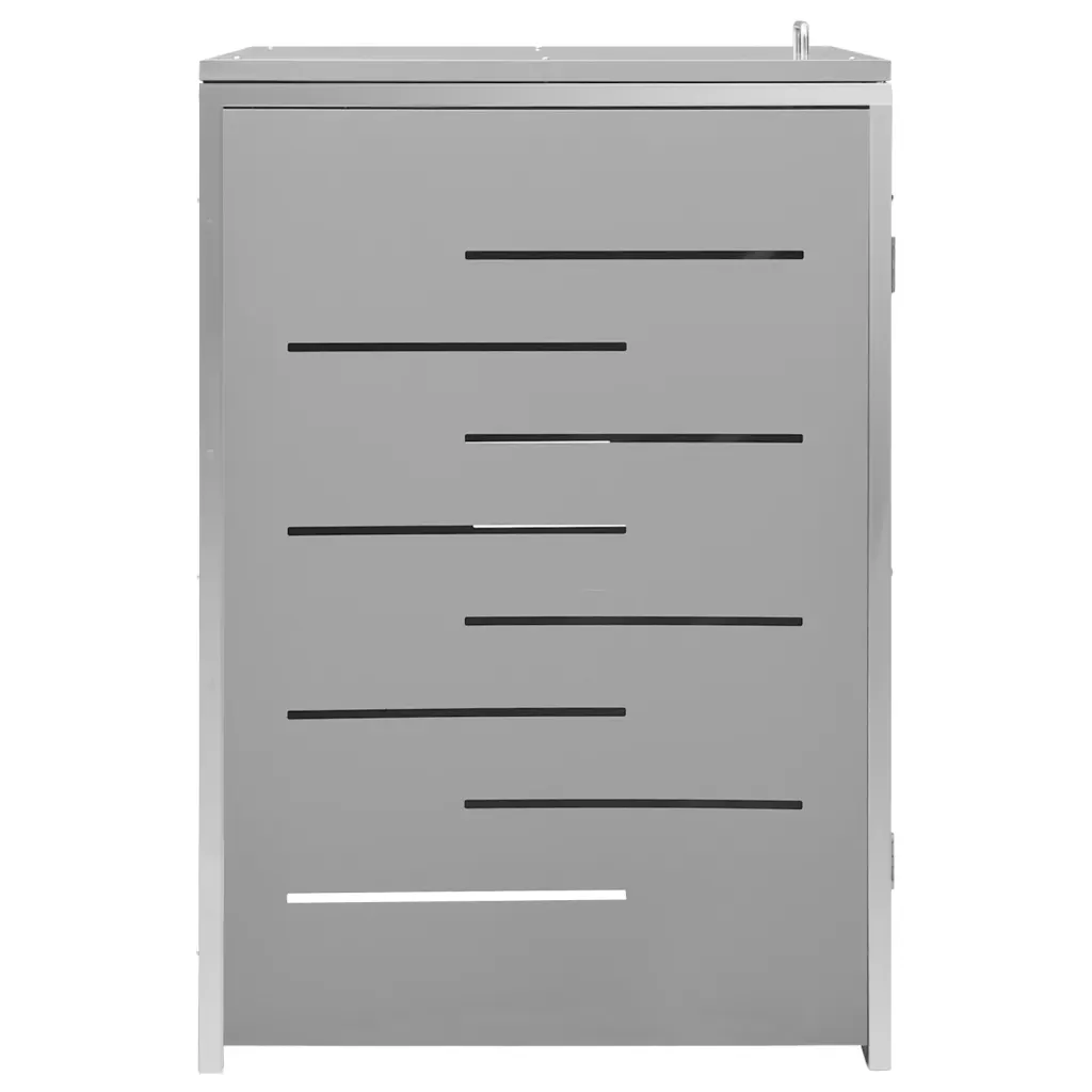 See lukustatav prügikasti hoiukuur aitab hoida prügikasti teiste pilkude eest ning muudab prügiala aias või hoovis korralikuks ja ühtlase välimusega. Hallist tsingitud terasest paneelid ja roostevabast terasest raam moodustavad vastupidava ja roostekindla lahenduse igapäevaseks kasutamiseks.