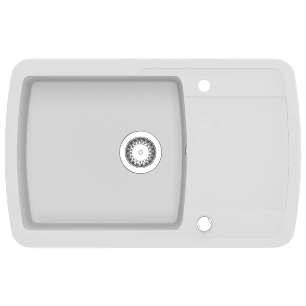 See valge, ühe valamuga graniitköögivalamu ühendab vastupidava materjali, sügava kausi ja paindliku paigalduse. Kuumus-, pleki- ja kriimustuskindel pind sobib hästi aktiivsele köögile, pööratav lahendus lihtsustab sobitamist olemasoleva sisustusega ning komplektis olev korvisõel teeb hoolduse lihtsaks.