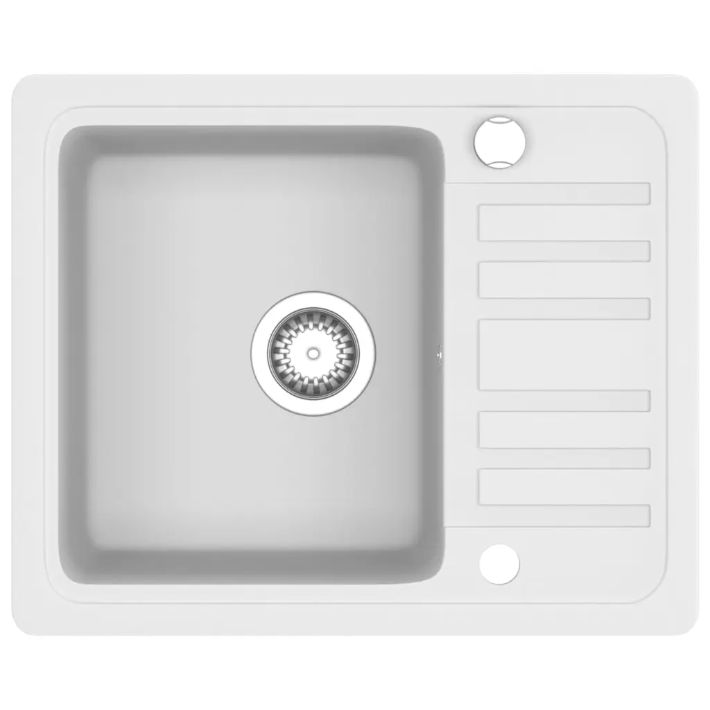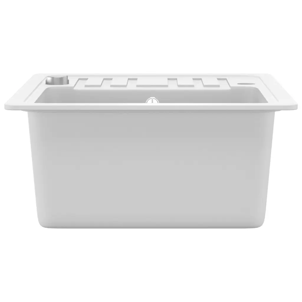 See valge graniitkomposiidist köögivalamu on praktiline lahendus igapäevaseks toidu ettevalmistamiseks ja nõude pesemiseks. Üks sügav valamu ning integreeritud nõrutuspind aitavad hoida tööpinna kuivana ja korras, samas kui ajatu disain sobib erinevatesse köökidesse.