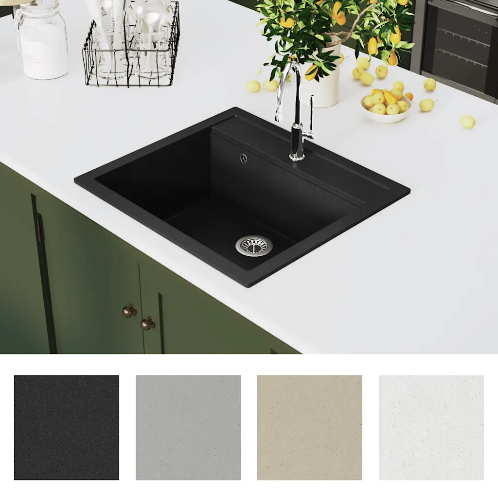 • Vastupidav graniitkomposiit – valmistatud 80% kvartsist ja 20% vaigust, mis tagab tugeva, stabiilse ja kauakestva valamu.