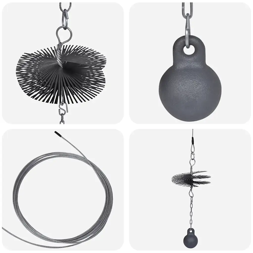 See komplekt on praktiline lahendus, kui soovite oma korstent regulaarselt ise hooldada ja hoida küttekolde töökindla ning ohutuna. Tugev terasest konstruktsioon, sobiv harja läbimõõt ja pikk traat muudavad korstna mehaanilise puhastamise lihtsaks ja usaldusväärseks.