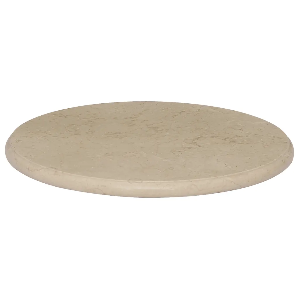 Kreemjasvalge marmorist ümar lauaplaat on lihtne lahendus, kui soovid olemasolevat söögilauda, kohvilauda või aialauda värskendada. 50 cm läbimõõduga ja 2,5 cm paksune plaat pakub stabiilset pinda ning marmorist materjal on vastupidav ja niiske lapiga kergesti puhastatav.