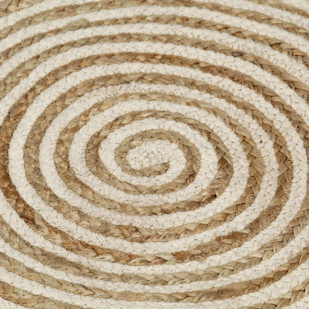 See ümmargune käsitsi valmistatud džuut- ja puuvillavaip toob teie koju looduslähedase ilme ning rõhutab interjööri modernse spiraalmustriga. Naturaalne ja valge toon loovad tasakaalustatud koosluse, mis sobitub kergesti erinevate sisustusstiilidega. Tugevast džuudist ja pehmest puuvillast valmistatud vaip on puudutades meeldiv ning vajab vähest hooldust.