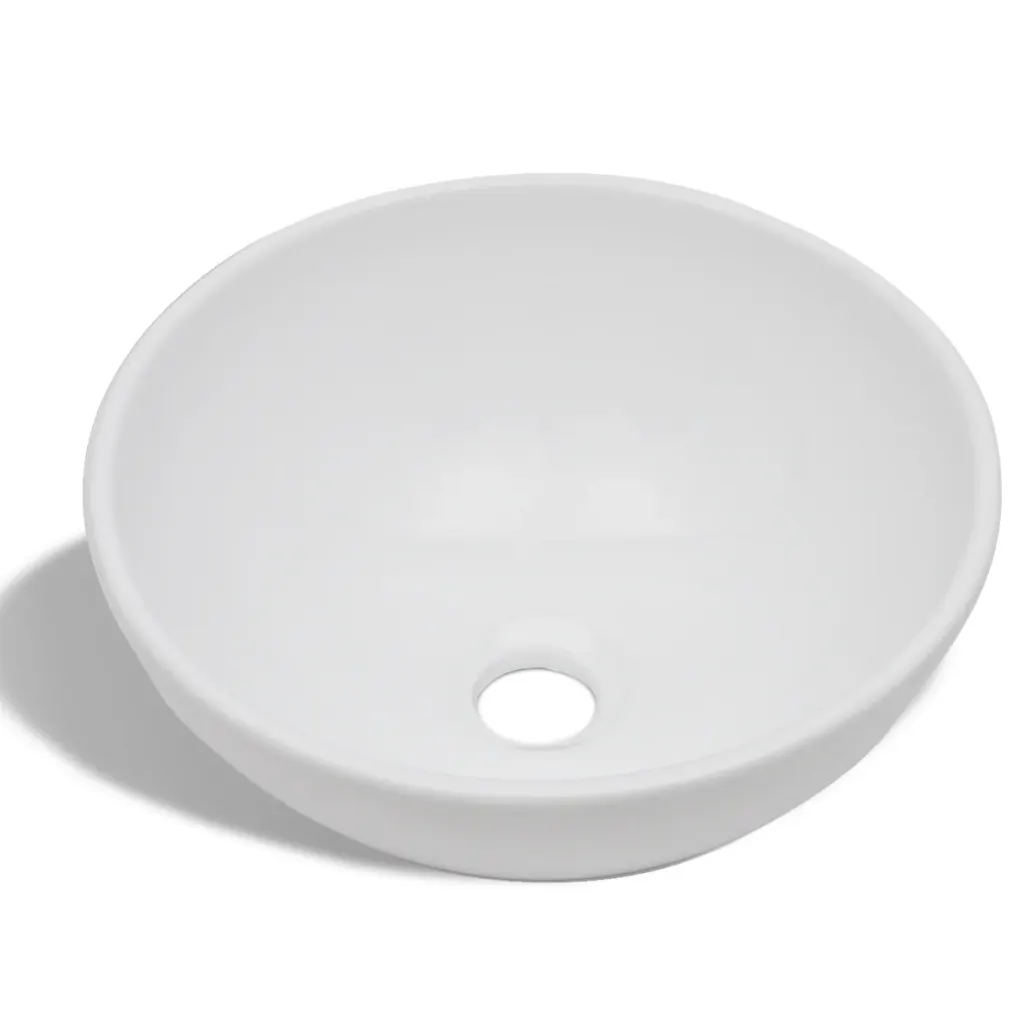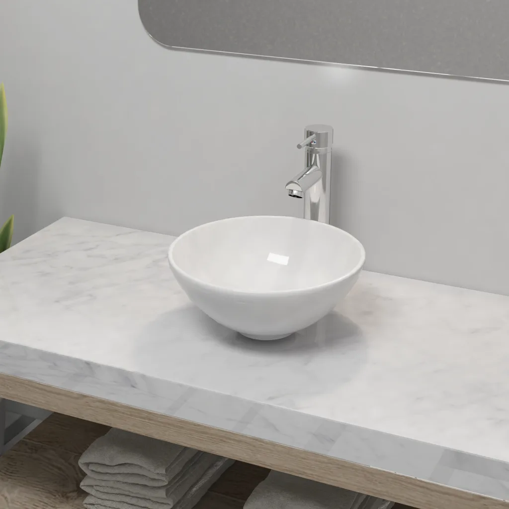 Miks valida Ümmargune keraamiline vannitoa valamu segistiga, valge, 32,5 x 14 cm?