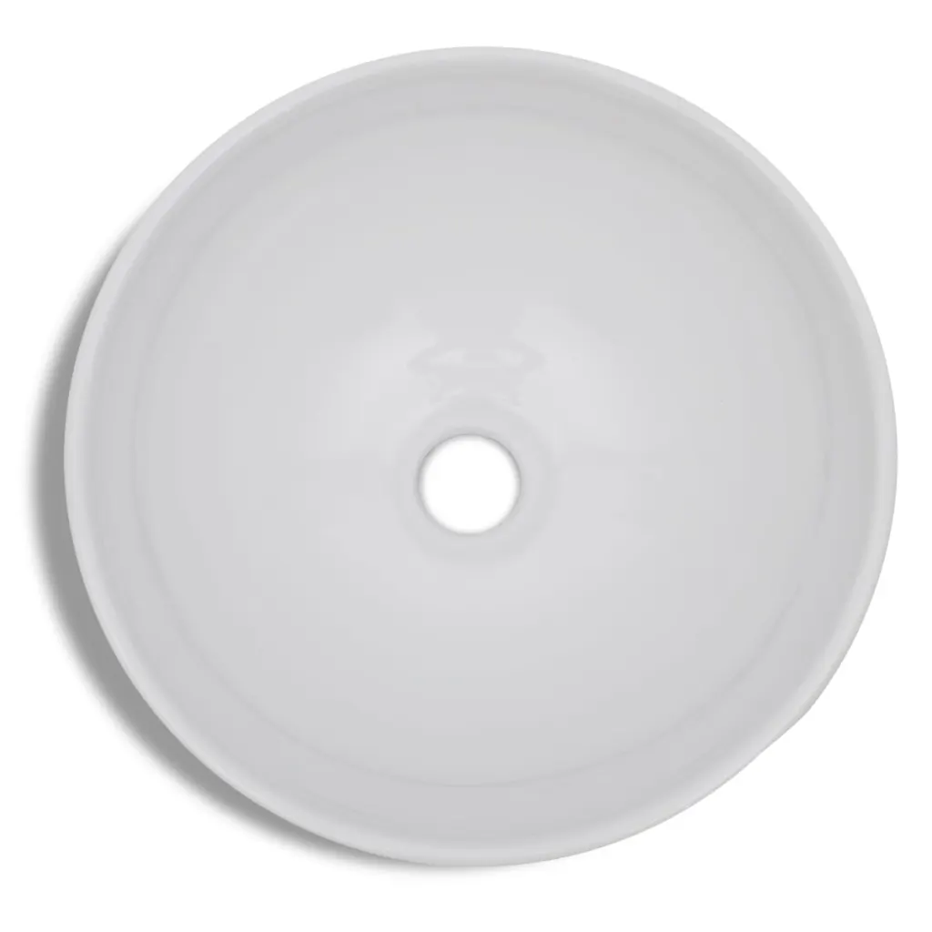 Ümmargune keraamiline valamu koos kroomitud segistiga on mõeldud kapi peale paigaldamiseks, tuues vannituppa, pesuruumi või tualetti puhta ja modernse ilme. Valge kõrgläikega pind on lihtsasti puhastatav ja sobitub erinevate sisekujundusstiilidega.