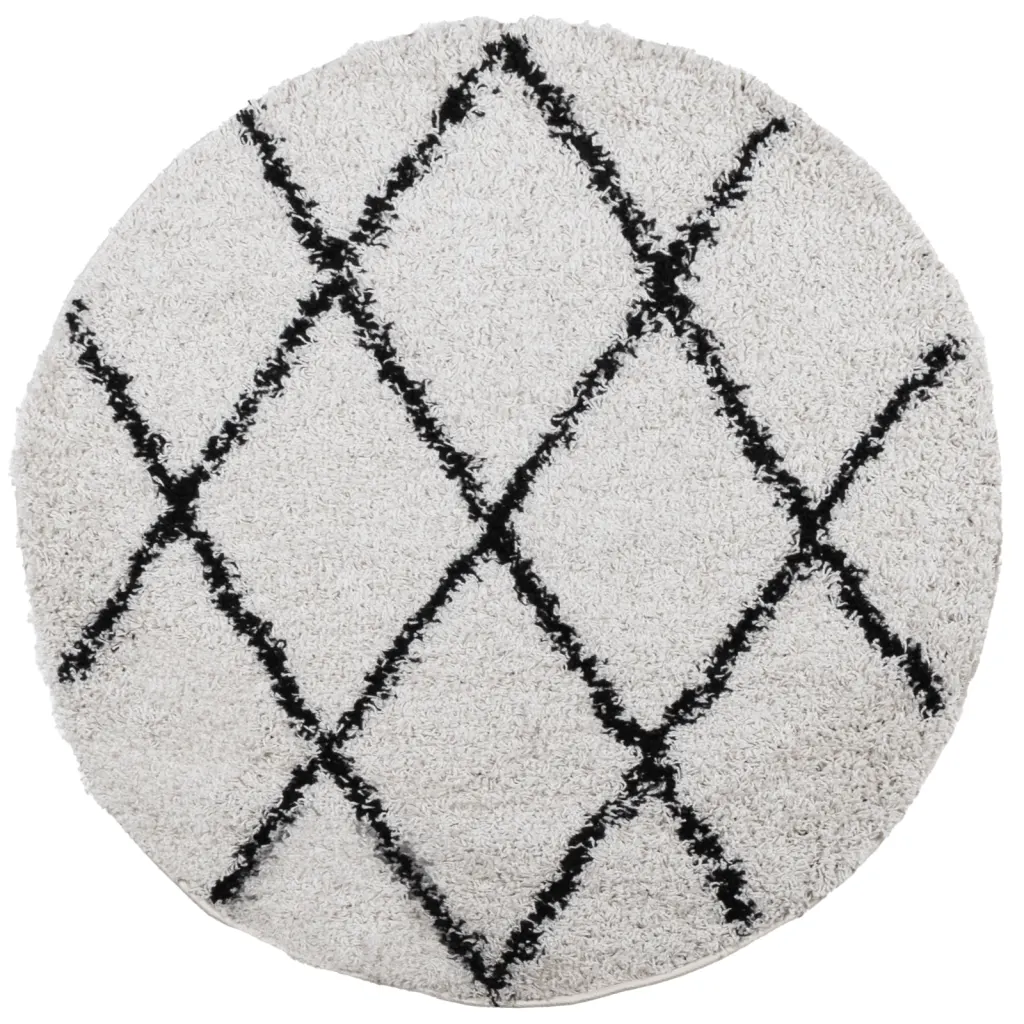 See ümmargune shaggy vaip läbimõõduga 100 cm lisab elutuppa, magamistuppa, esikusse või kontorisse hubast soojust ja pehmet tekstuuri. Kreemjasvalge ja musta mustriga PAMPLONA sari sobitub kergesti erinevate sisustusstiilidega.