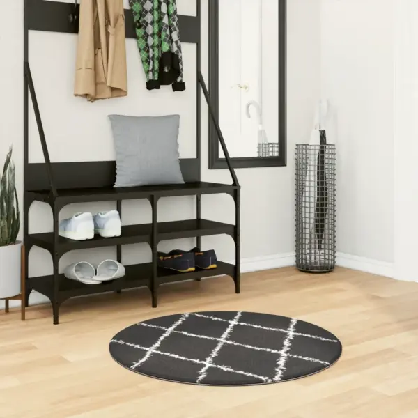 Ümmargune shaggy vaip PAMPLONA lisab siseruumide külmadele põrandatele pehmust, soojust ja visuaalset tekstuuri. Must-kreemjas ruudumustriga disain sobib hästi nii modernsesse kui ka skandinaavialikku interjööri. Tänu 30 mm kõrgusele narmale loob vaip kõndides eriti hubase ja koheva tunde ning Ø 80 cm mõõt on praktiline valik väiksematesse aladesse nagu esik, istumisnurk või voodiäär. Vastupidav 100% polüpropüleen on lihtne hooldada ja sobib igapäevaseks kasutuseks.