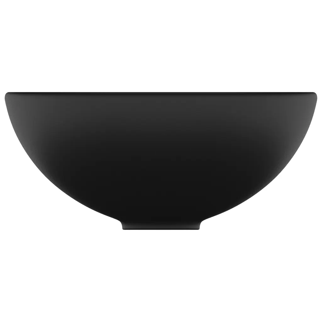 See ümmargune mattmust keraamiline valamukauss on stiilne täiendus igasse vannituppa, pesu- või tualettruumi. Matt pind ja luksuslik disain annavad ruumile modernse, ent samas tagasihoidlikult elegantse ilme. Kompaktne 32,5 x 14 cm suurus sobib hästi nii väiksematele kui suurematele tasapindadele.