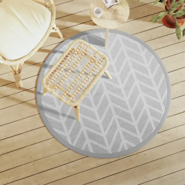 Hall ümmargune õuevaip ARAKIL loob kiiresti hubase tunde terrassil, rõdul või verandale. Vastupidavast polüpropüleenist valmistatud vaip sobib kasutamiseks nii õues kui toas ning ümberpööratav jacquard-muster aitab lihtsasti interjööri või väliala ilmet värskendada.