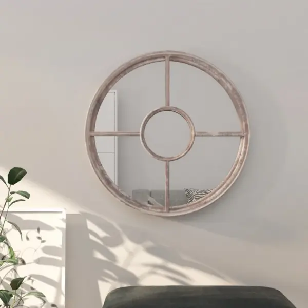 See ümmargune seinapeegel loob interjööris efektse keskpunkti, aidates suunata valgust ja tuua ruumi rohkem avarust. Liivakarva rauast raamiga peegel sobib erinevatesse eluruumidesse, lisades neile kerge vintage‑ilme. Kompaktne, kuid märgatav 40 x 4 cm mõõt teeb selle heaks valikuks nii esikusse, elutuppa kui ka magamistuppa.
