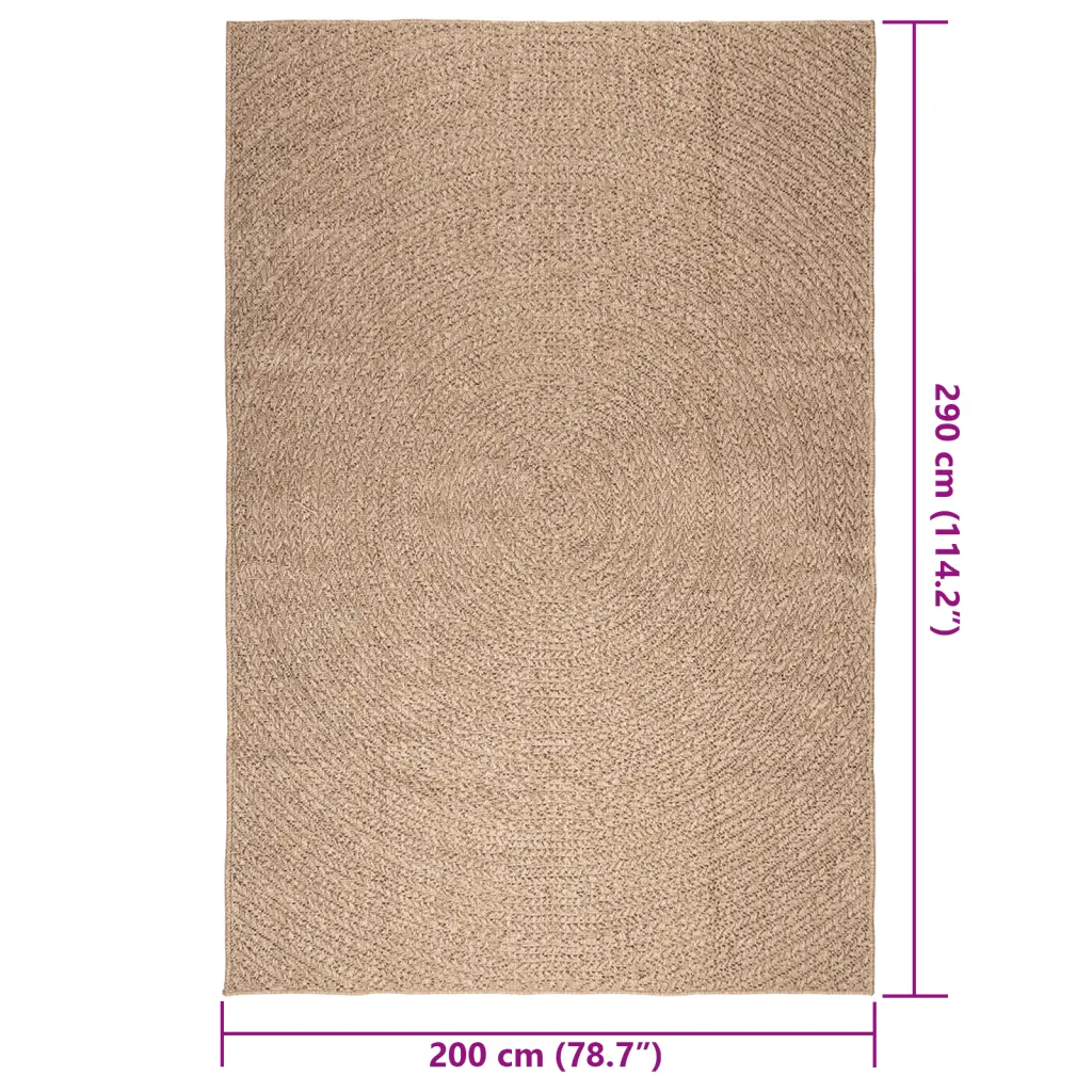 ZIZUR vaip ühendab džuudilaadse välimuse ja polüpropüleeni praktilisuse, pakkudes lahendust, mis sobib nii nõudlikesse õueoludesse kui igapäevaseks kasutamiseks toas. UV-kindel materjal aitab säilitada värvi ja struktuuri, samal ajal kui suur 200 x 290 cm formaat katab mugavalt suuremad pinnad. Kui otsid lihtsasti hooldatavat ja vastupidavat vaipa, on see mudel sobiv valik terrassile, rõdule või elutuppa.