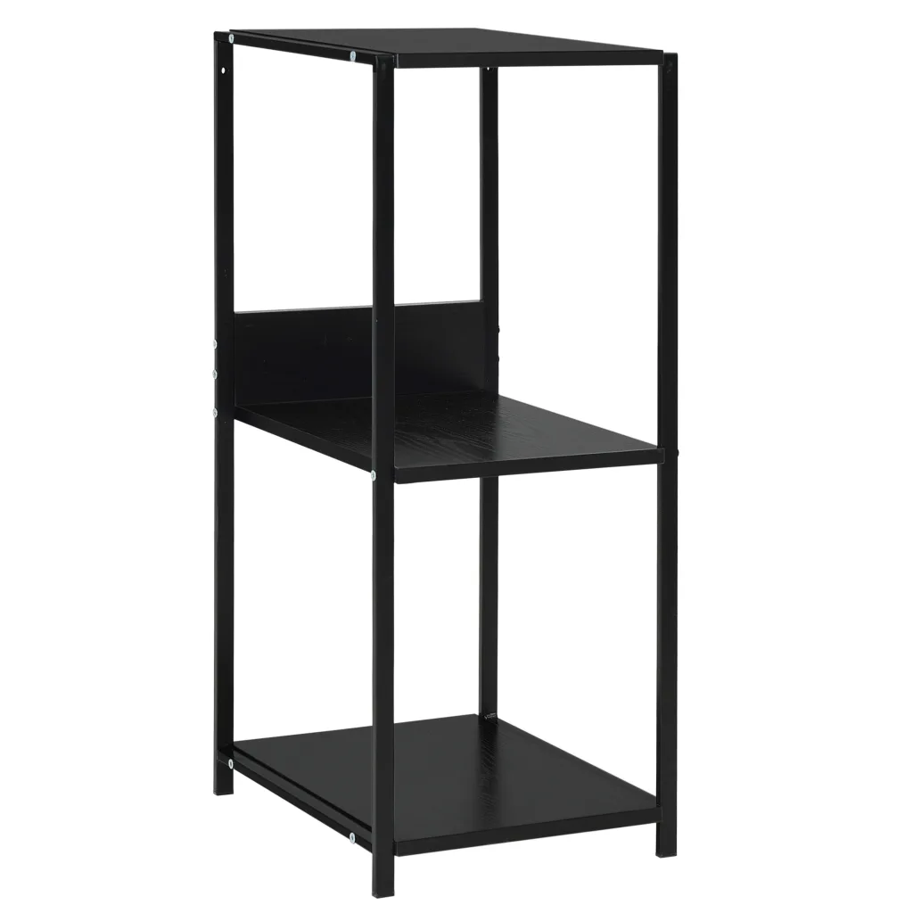 See väike must raamaturiiul aitab tõhusalt ära kasutada iga nurga elutoas, esikus või rõdul. Kolm avatud riiulit pakuvad ruumi raamatutele, taimedele ja dekoratsioonidele, samas kui terasraam ja tehispuidust plaadid tagavad stabiilsuse igapäevases kasutuses.