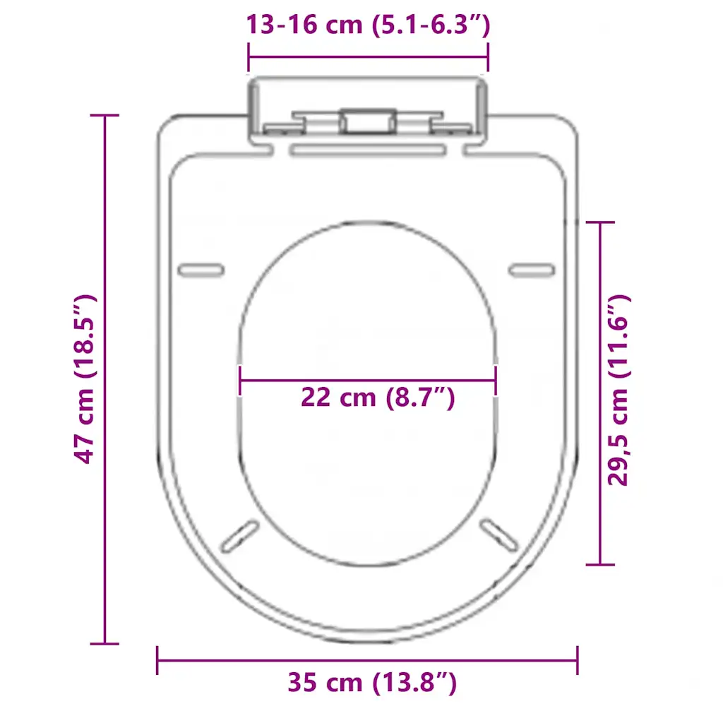 - Universaalne suurus 47 x 35 cm sobib enamikele standardsetele tualettpottidele nii kodus kui ka avalikes ruumides.