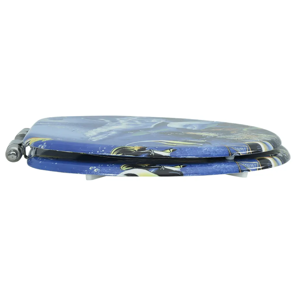 Delfiinimustriga vaikselt sulguv WC prill-laud müra vähendamiseks