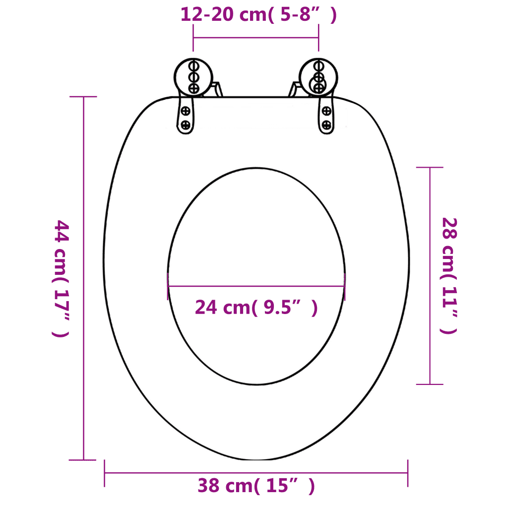 • Reguleeritav hingede vahe 12–20 cm võimaldab prill-laua sobitada enamiku tavaliste WC-pottidega.