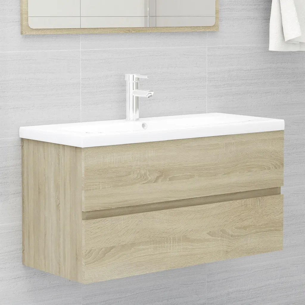 See sonoma tamme toonis valamukapp sisseehitatud keraamilise valamuga aitab hoida vannitoa või pesuruumi tarvikud organiseeritult ning loob puhta ja modernse ilme. Kompaktne 90 cm laiune lahendus sobib hästi valamu alla, pakkudes mugavat hoiuruumi igapäevaselt kasutatavatele esemetele.
