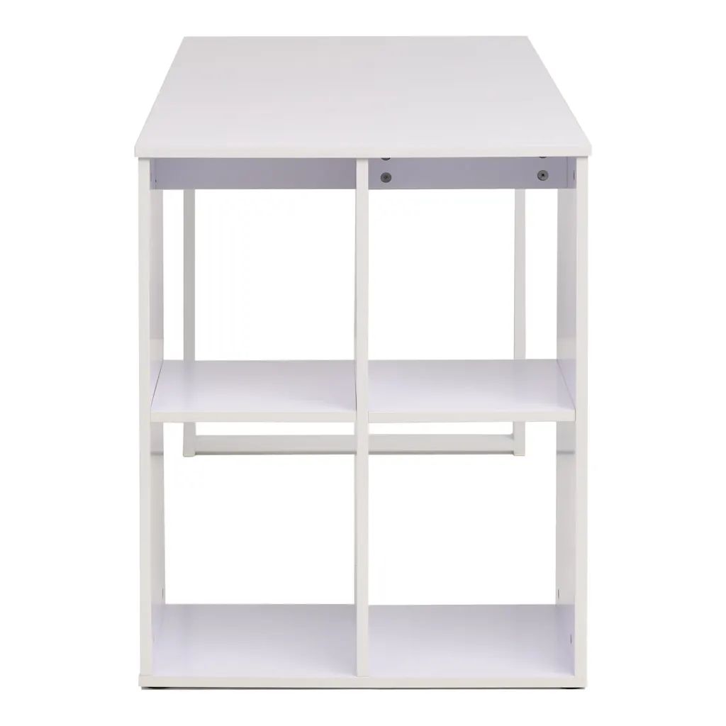 See valge kirjutuslaud pakub mugavat tööpinda nii koju kui kontorisse, ühendades endas lihtsa moodsa disaini ja praktilise panipaiga. Melamiin-viimistlusega tehispuit ja terasest raam tagavad stabiilsuse ning vastupidavuse, samal ajal kui 4 sektsiooni laua küljel aitavad hoida töölaua ümbruse korras.