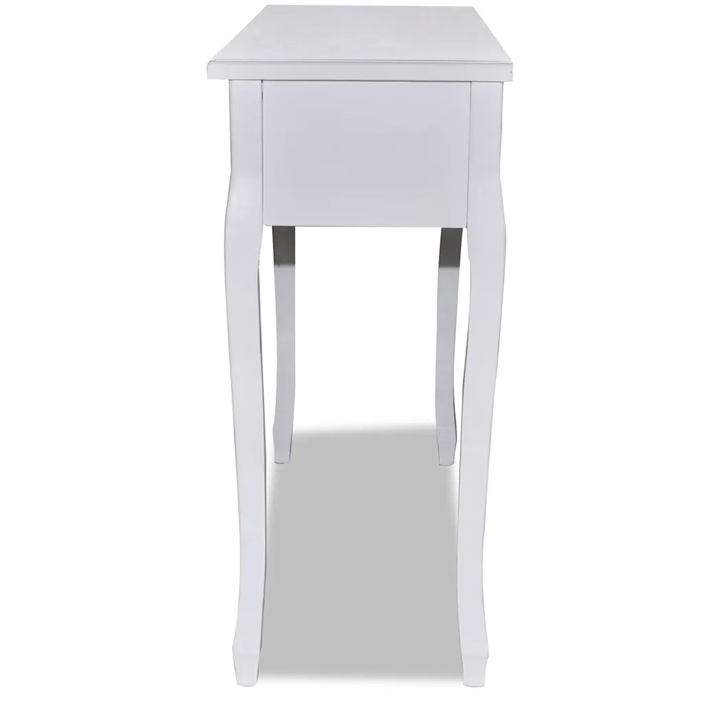 Kvaliteetsest MDF-ist ja männipuidust valmistatud laud on kaetud vastupidava valge värvikihiga, mis aitab pinda lihtsamini hooldada. Kolm kergesti avatavat sahtlit – üks suurem keskel ja kaks väiksemat külgedel – hoiavad võtmed, kosmeetika ja dokumendid silma alt ära, kuid käepärases kohas.