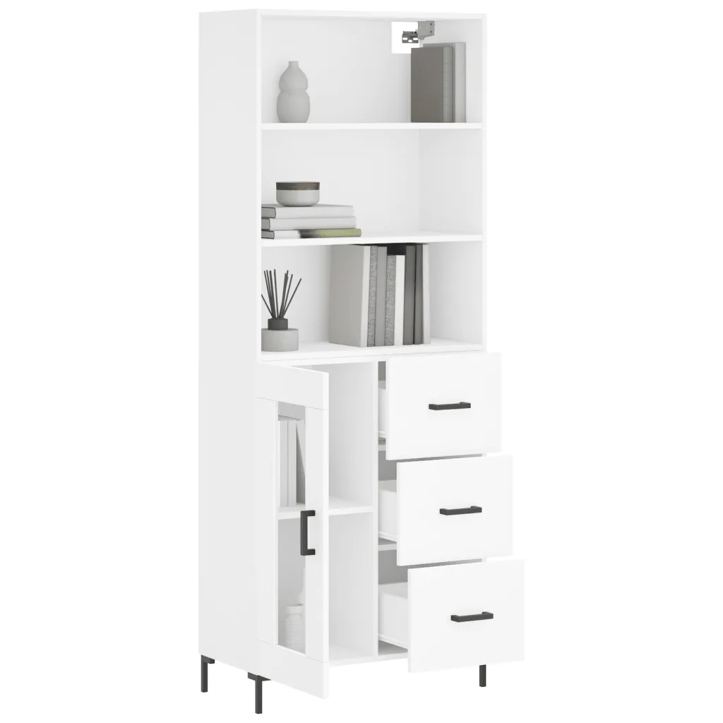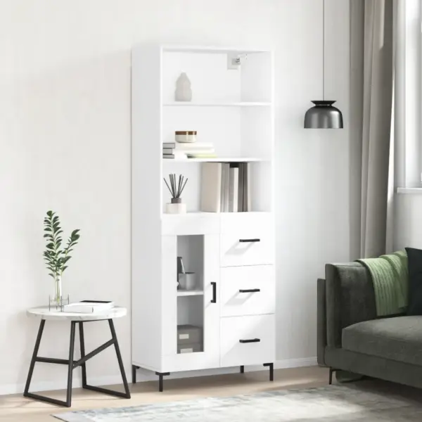 Kui vajad kompaktset kuid mahukat hoiulahendust, on see valge kõrge kapp praktiline valik. Avatud riiulite, klaasukse ja suletud sahtlite kombinatsioon aitab mugavalt eraldada erinevaid igapäevaesemeid ning hoida ruumi visuaalselt korras.