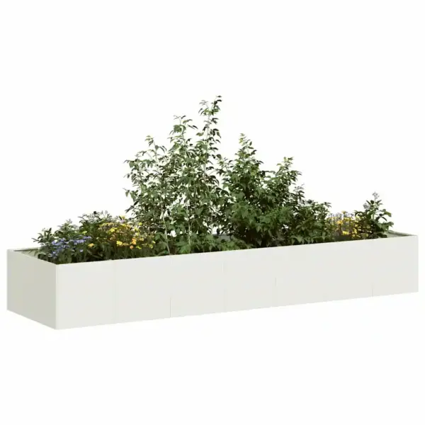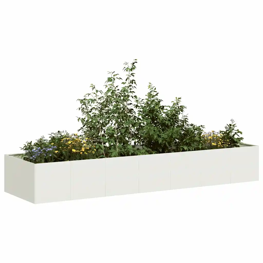 See valge külmvaltsitud terasest taimekast loob aeda, rõdule või terrassile selge ja korrastatud kasvuala. 280 x 80 x 40 cm mõõtmetega kõrgpeenar pakub ohtralt ruumi köögiviljadele, ürtidele ja lilledele ning avatud põhjaga konstruktsioon tagab taimedele loomuliku drenaaži ja juurte vaba kasvu.