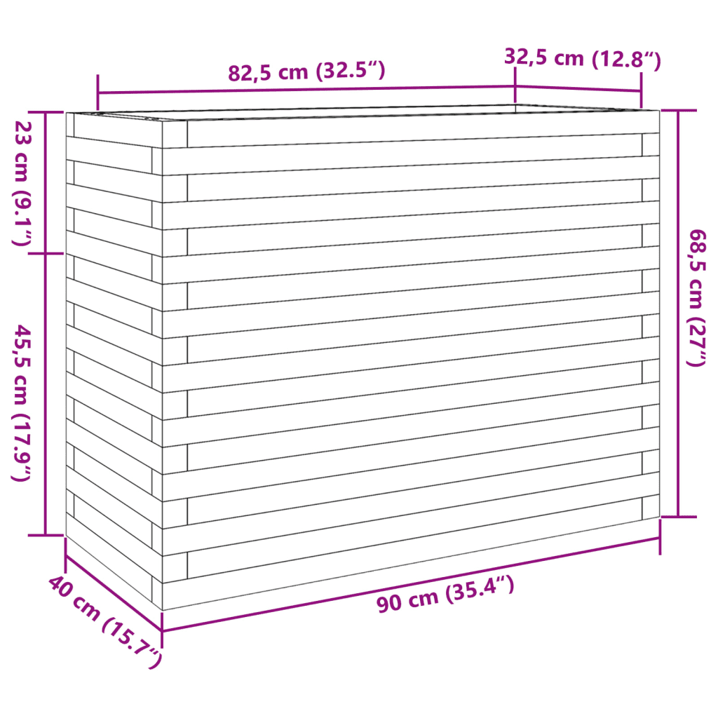 - Sisemõõtmed 82,5 x 32,5 x 68,5 cm tagavad sügava ja funktsionaalse istutusruumi taimede juurestikule.