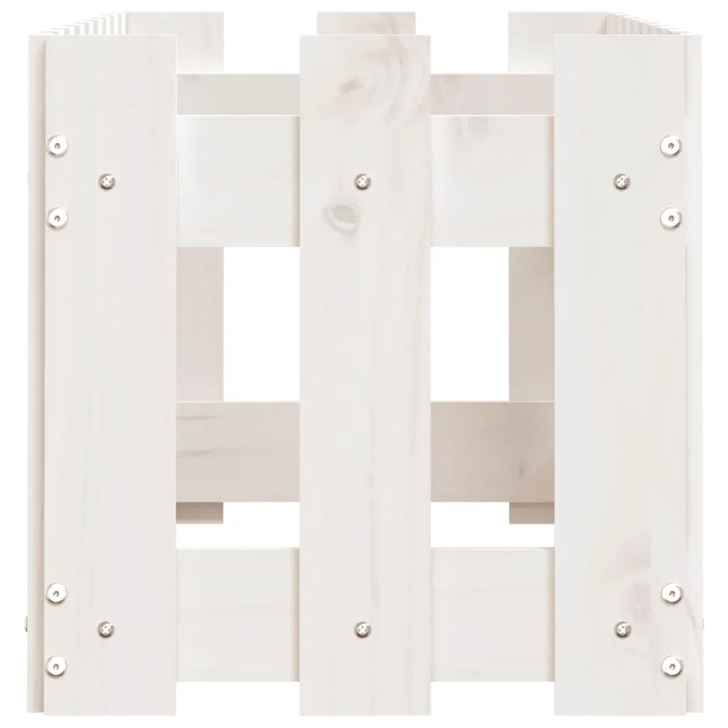 See valge männipuidust kõrgendatud taimelava on praktiline lahendus lillede ja maitsetaimede kasvatamiseks aias või rõdul. Ruumikas kast hoiab mulda ja taimi ühes kohas koos ning aiapiirde stiilis disain lisab istutusalale korrastatud ja dekoratiivse ilme.