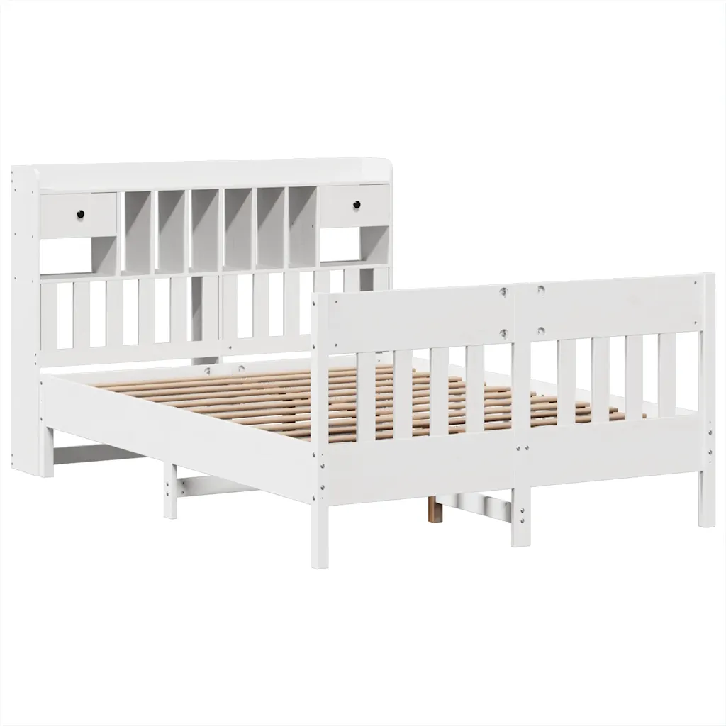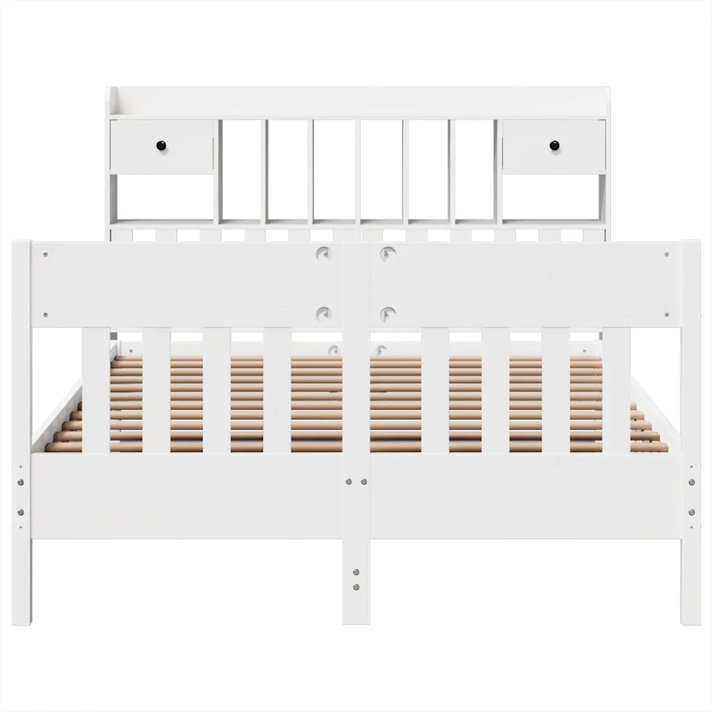 See valge männipuidust voodiraam hoiuruumiga sobib neile, kes soovivad ühendada mugava magamiskoha ja praktilise panipaiga. Integreeritud peats koos avatud sektsioonide ja sahtlitega aitab hoida öökapile kuuluva käeulatuses ning vähendada segadust magamistoas.