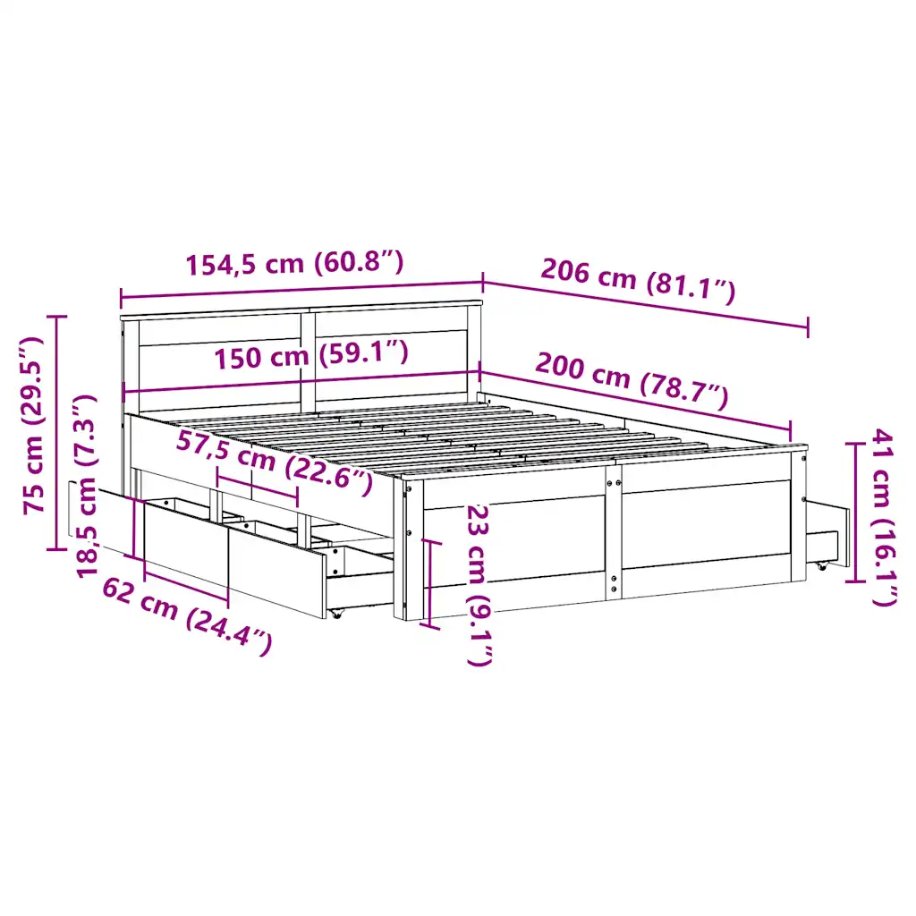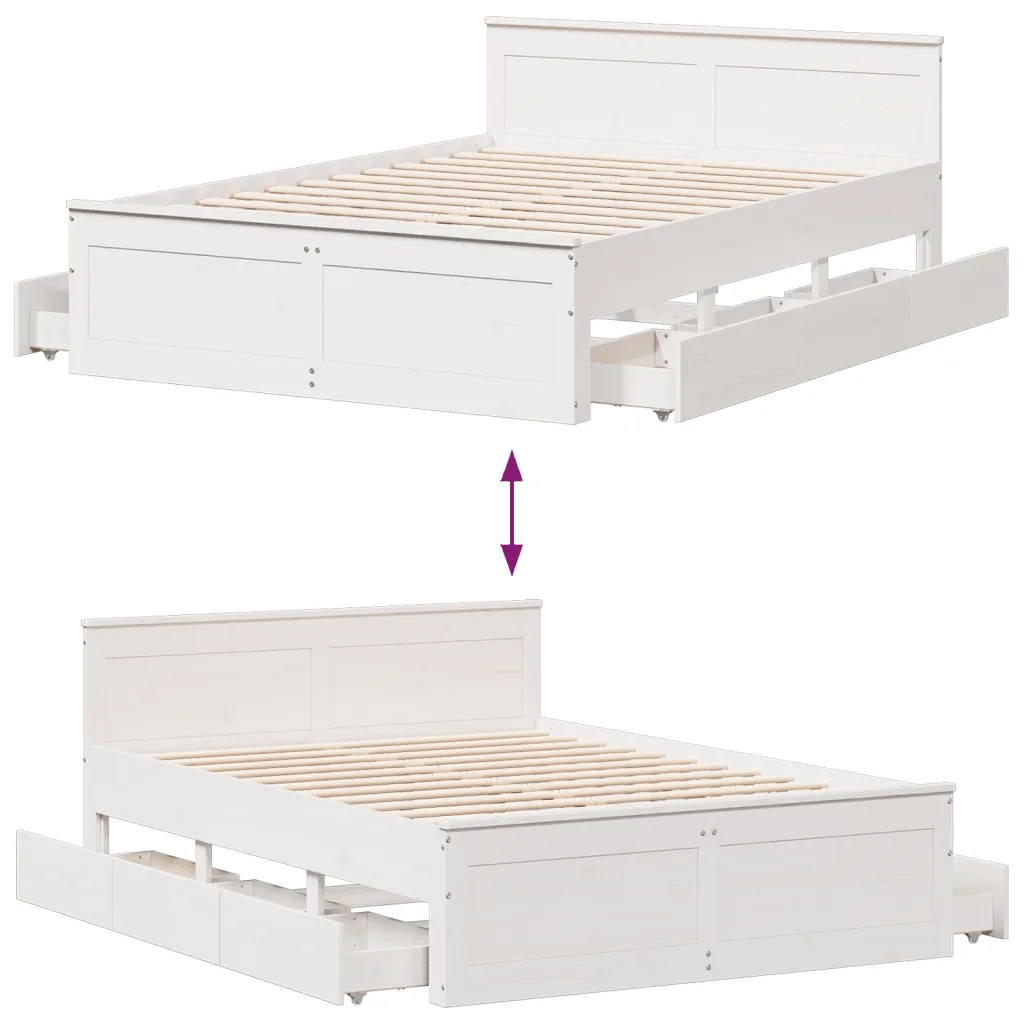 Miks valida valge männipuidust voodiraam sahtlitega 150 x 200 cm