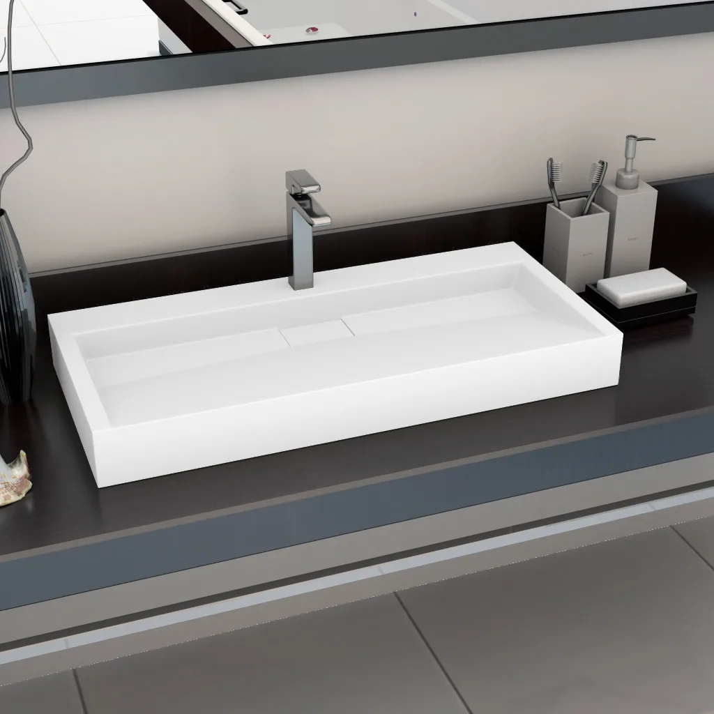 See valge mineraalvalamist valamu sobib vannituppa, tualettruumi või pesuruumi, pakkudes praktilist pesukohta ja kaasaegset ilmet. 100 x 46 x 11 cm mõõtmetega valamu sobitub hästi erineva suurusega tööpindadele ning selle neutraalne värv täiendab eri stiilis sisekujundust.