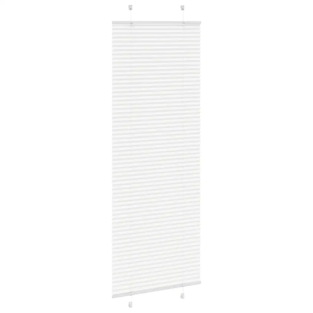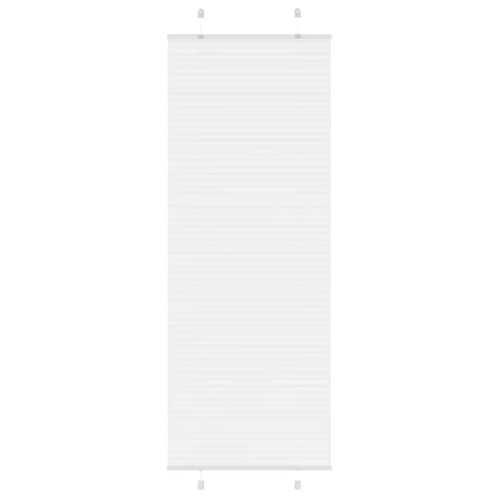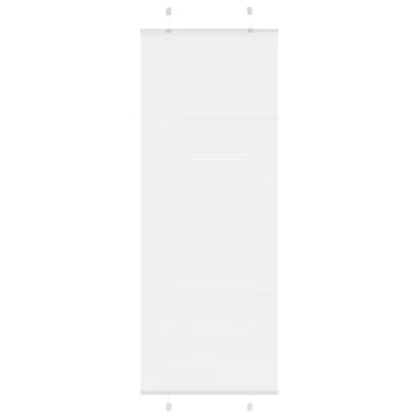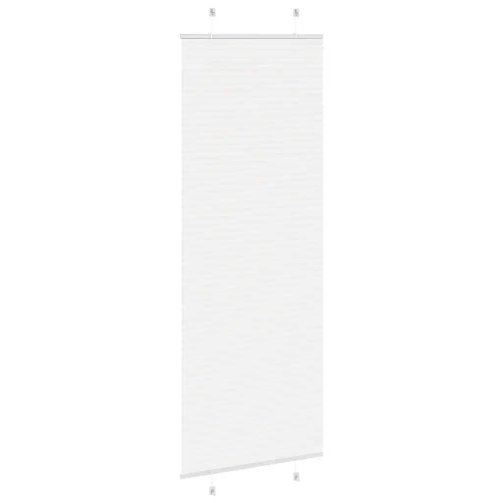 See valge plisseeritud ruloo mõõtudega 80 x 200 cm aitab luua ruumis mugava valguse ja vajaliku privaatsuse. Volditud polüesterkangas ei ole läbipaistev, kuid mitte ka täielikult pimendav, mistõttu sobib ruloo hästi elutuppa, magamistuppa või kontorisse.