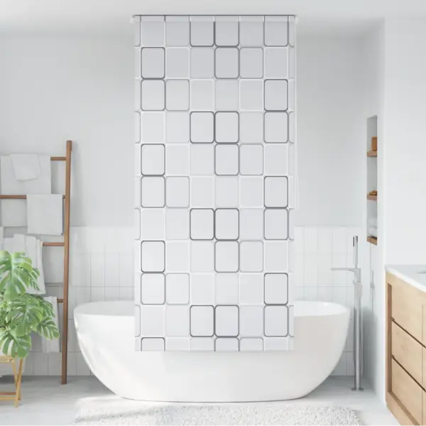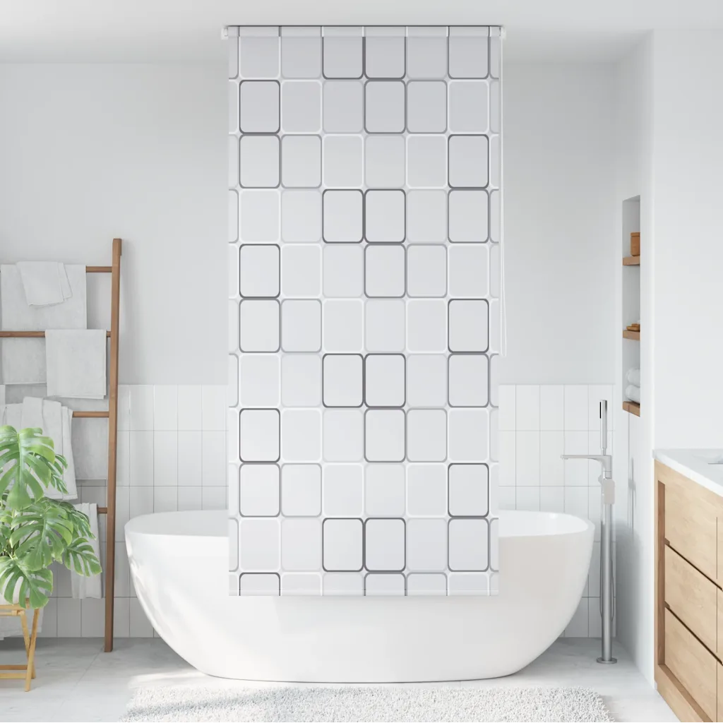 - Ruutude mustriga valge disain sobitub erinevatesse vannitubadesse ja tagab samal ajal piisava privaatsuse.