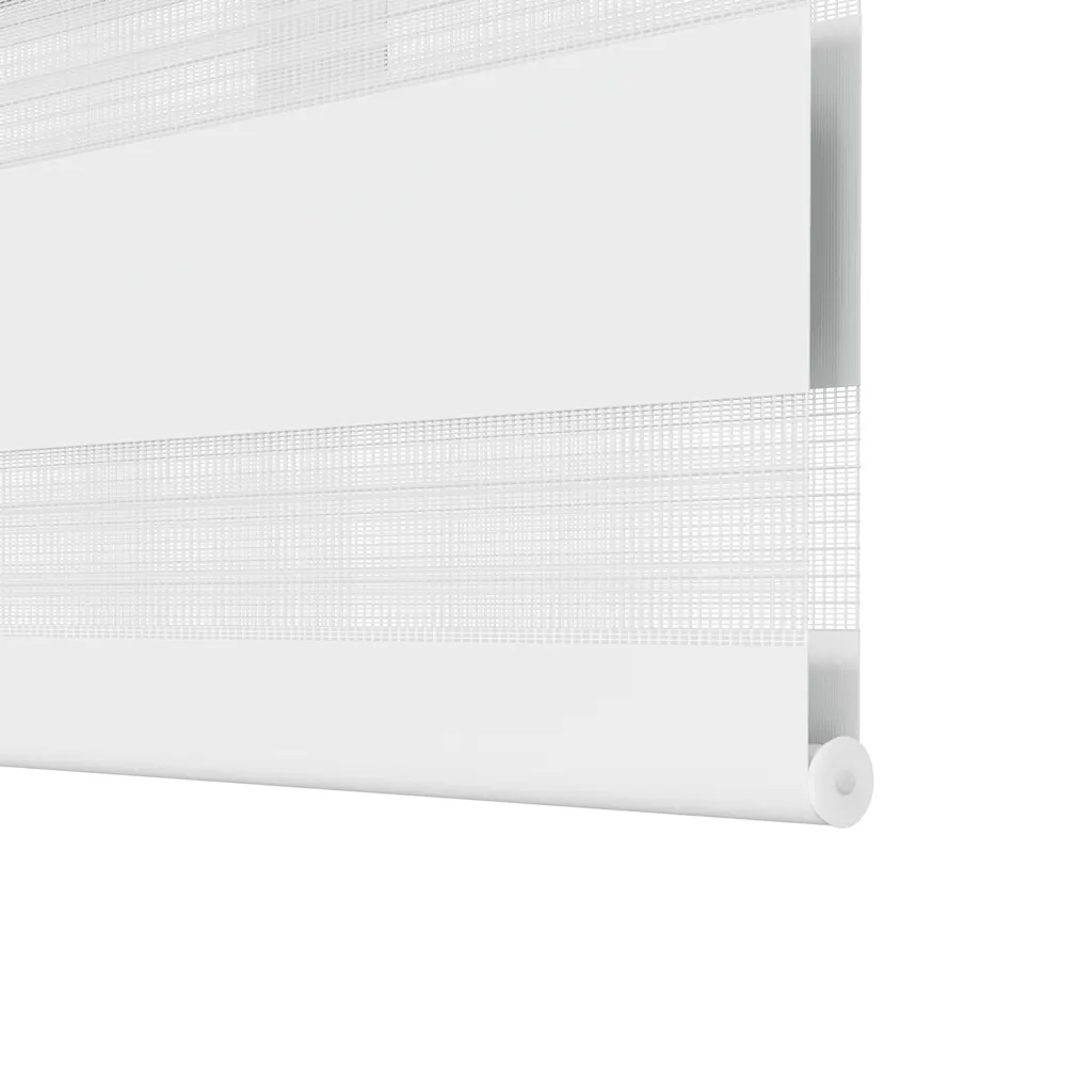 See valge sebraruloo on praktiline ja stiilne lahendus, kui soovid akna ette kaasaegset katet, millega on lihtne valguse hulka ja läbipaistvust reguleerida. Kahekordsest kangast ehitus loob vahelduva läbipaistva ja läbipaistmatu mustri, mis sobitub moodsasse eluruumi ning aitab saavutada sobiva tasakaalu päevavalguse ja privaatsuse vahel.