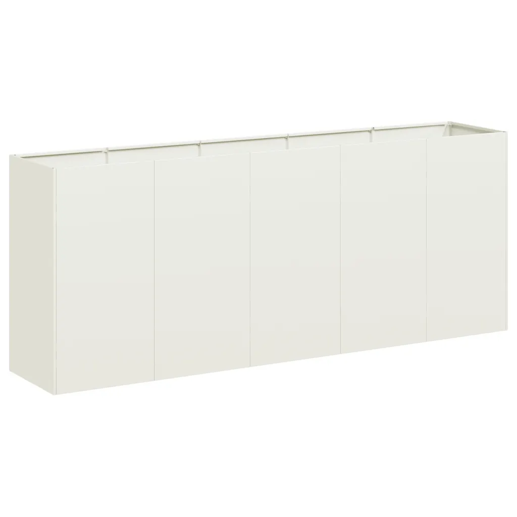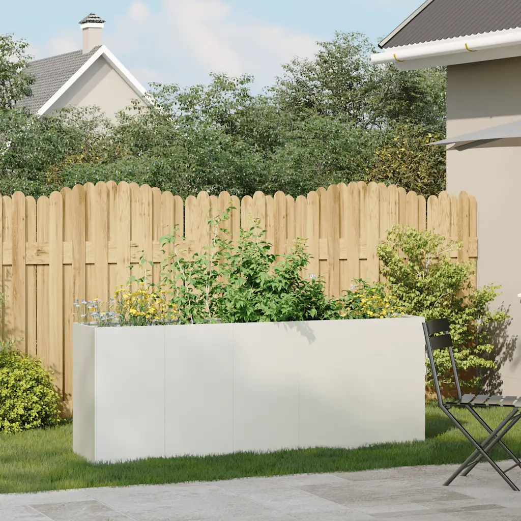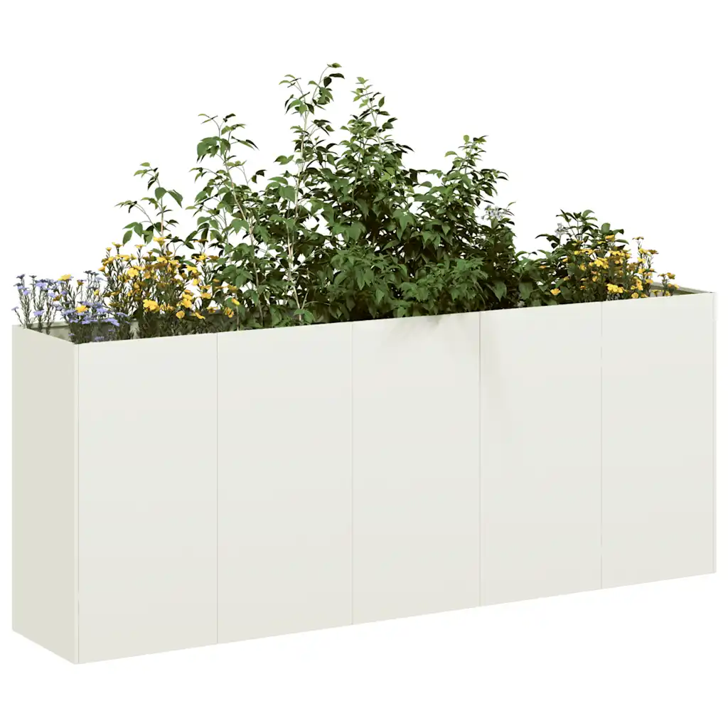 See valge külmvaltsitud terasest taimekast on hea valik, kui soovid luua ühe suure või mitu erinevat istutustsooni ühte pikemasse kõrgendatud peenrasse. Avatud põhi, stabiilne metallkonstruktsioon ja ruumikad mõõtmed muudavad selle sobivaks nii dekoratiivsete lillede kui ka köögiviljade ja ürtide kasvatamiseks erinevates väliruumides.