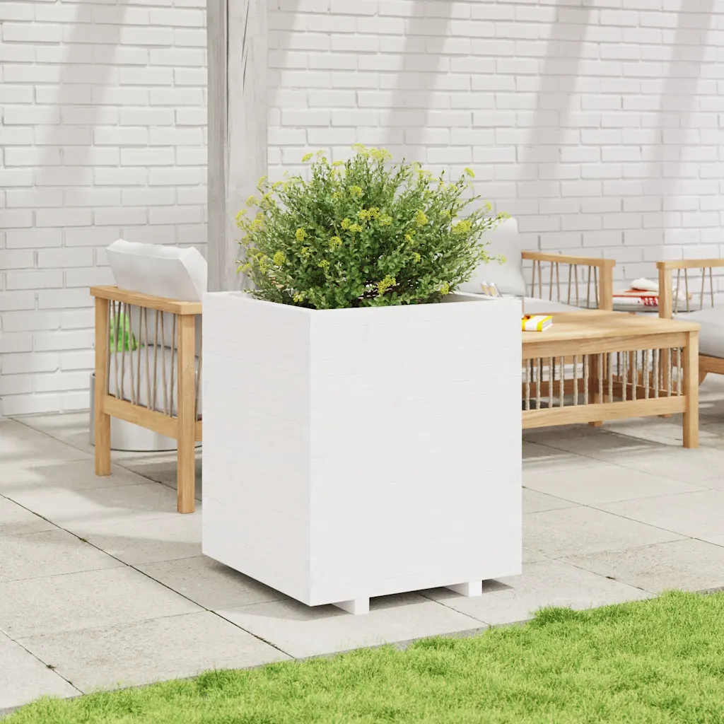 Valge puidust aia taimekast ruumisäästlikuks istutamiseks aias ja rõdul
