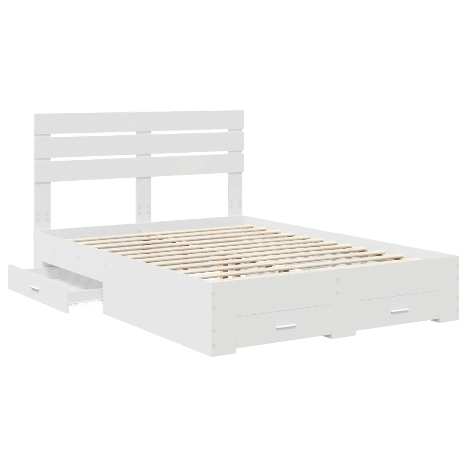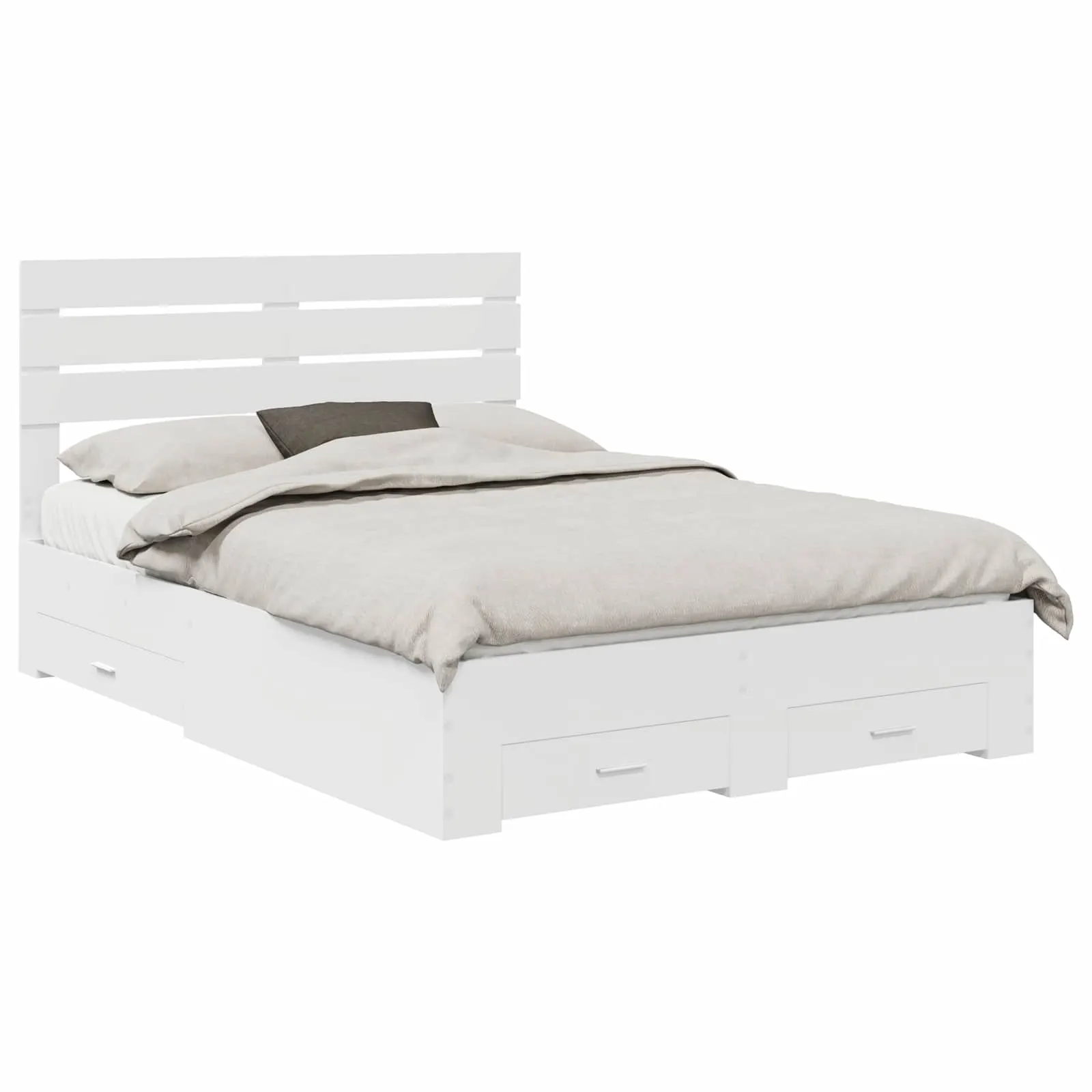 Valge tehispuidust voodiraam sahtlite ja peatsiga on praktiline lahendus, kui soovid kasutada magamistoas iga sentimeetrit. Voodi alla integreeritud sahtlid pakuvad lisapanipaika voodipesu, riiete või muu vajalikku jaoks, samal ajal kui selge joonega disain sobitub erineva stiiliga sisustusse ja aitab luua rahuliku ning organiseeritud keskkonna.