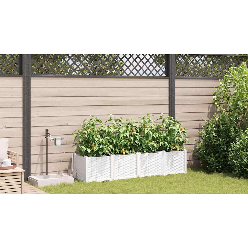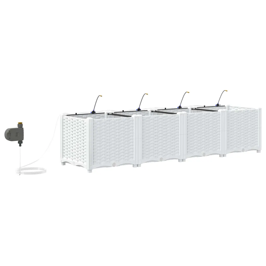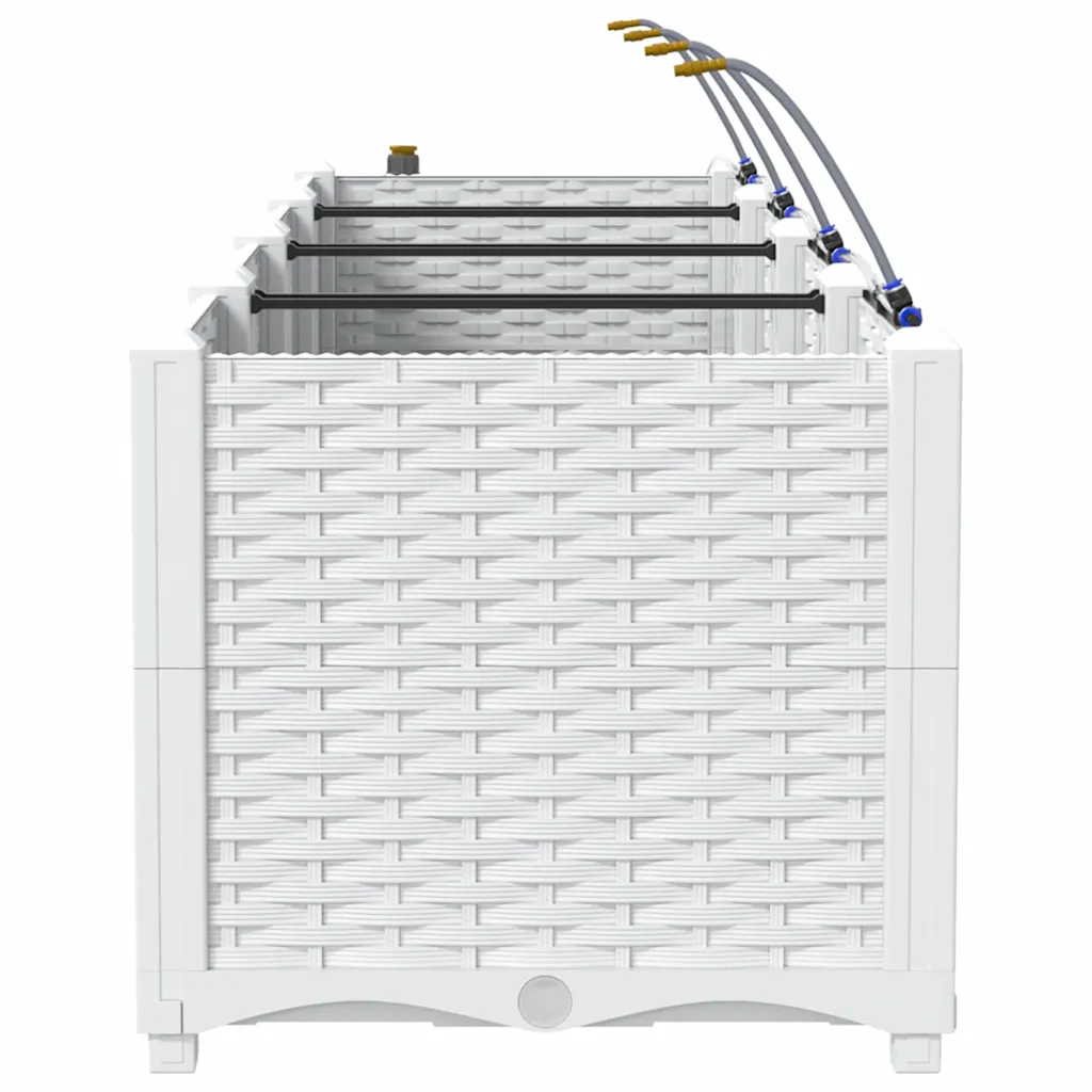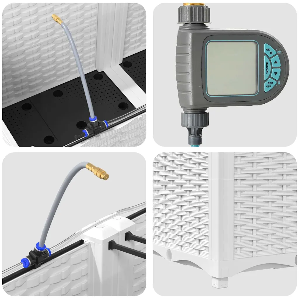 Valge terasest istutuskast ühendab vastupidava konstruktsiooni, mahuka istutusala ja integreeritud kastmissüsteemi, mis muudab taimede hoolduse lihtsamaks. 4-osaline komplekt sobib hästi nii aeda kui terrassile, aidates luua korrastatud ja ühtse ilmega istutusala, mis täiendab kogu väliruumi.