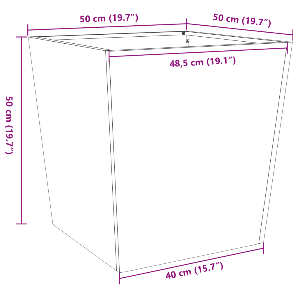 - Ruumikas sisemus mõõtmetega 50 x 50 x 50 cm mahutab palju mulda ja toetab nii lillede, ürtide kui ka juurviljade kasvatamist.