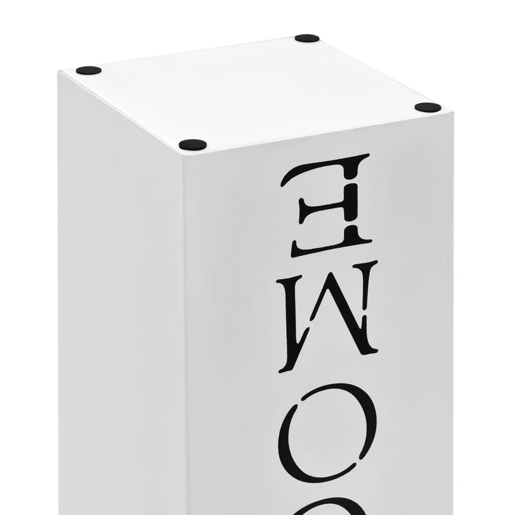 - Kaasaegne välimus – lihtne valge disain koos Welcome-kirjaga lisab ruumile dekoratiivse aktsendi.