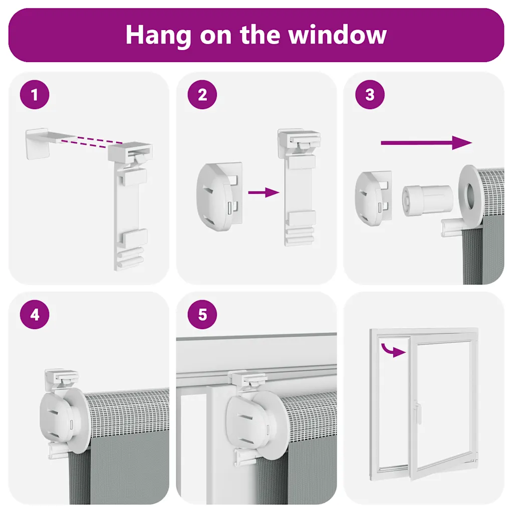 • Kaks paigaldusviisi – ruloo saab kinnitada seinale või aknaraamile kas kruvidega või ilma puurimiseta, kasutades kaasasolevaid kinnitusklambreid.